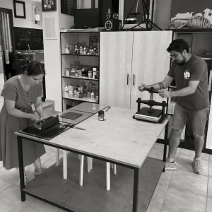 Este taller ofrece una primera toma de contacto con el grabado a través de las técnicas de impresión en relieve: la xilografía y la linografía. Cada una de las técnicas se explica en detalle, desde la elección de la imagen y la creación de la matriz, al entintado y la estampación final. Todo el material está incluido y no es necesario contar con conocimientos previos.